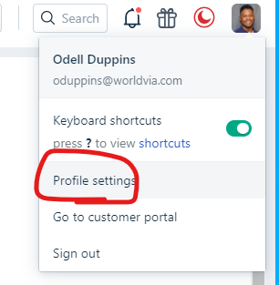 Step 2: Open Freshdesk and click on your icon in the upper right corner. It’ll be your initials if you haven’t uploaded a profile picture, and of course it’ll be your image if you’ve added one.