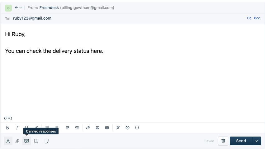 Now your agents can use the canned response you created in a ticket by clicking on Insert Canned Response.