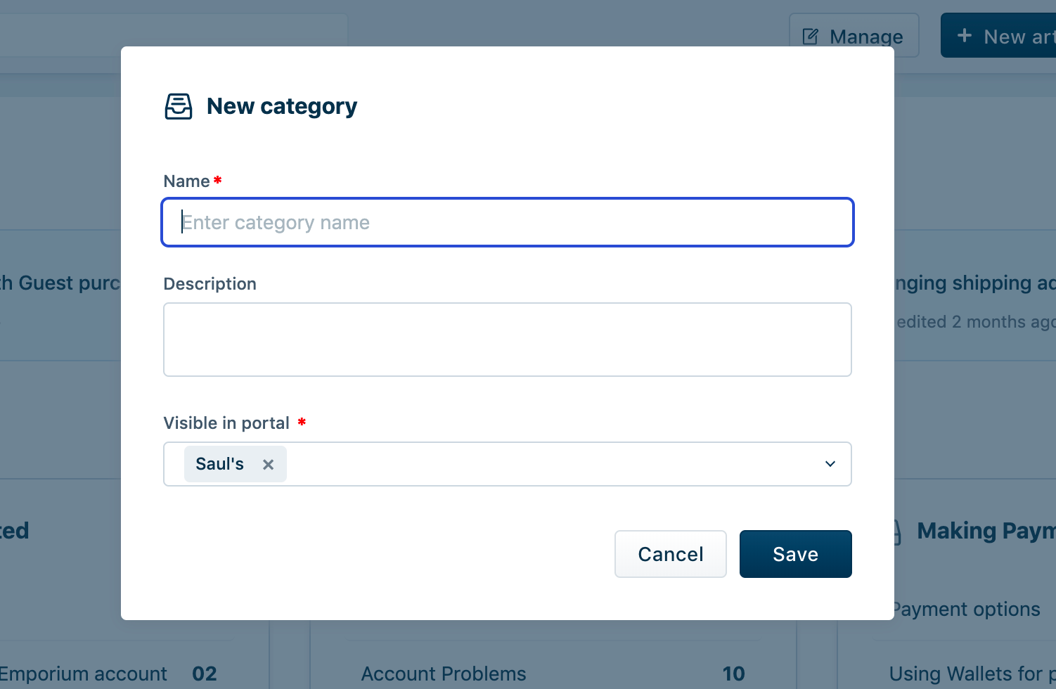 At the top level, Categories broadly classify your solutions page into several sections. For example, you could place Shipping, Payments, and delivery-related information under the Order Fulfillment category. Another interesting application of this organizational system is when you're providing support across multiple brands or products (more about multi-product support here).
