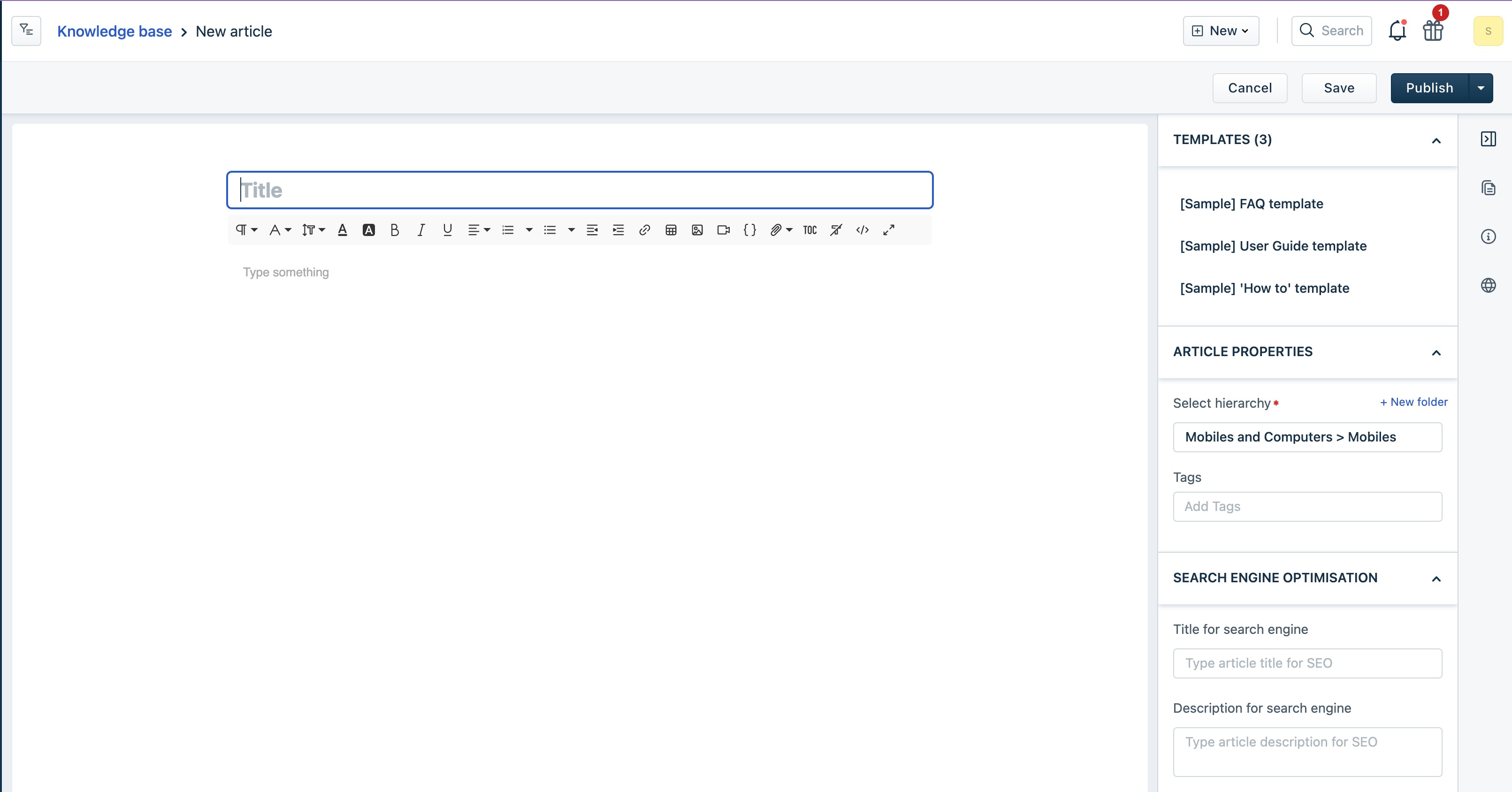 Once you fill this up, click on Save if you still need to work on it. This will save the article as a draft and will be available in your drafts folder. Click on Publish if you wish to publish the solution article.