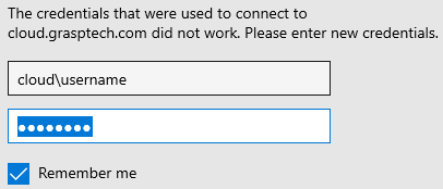 - Enter users GraspCLOUD credentials (be sure to check the “Remember me” box)