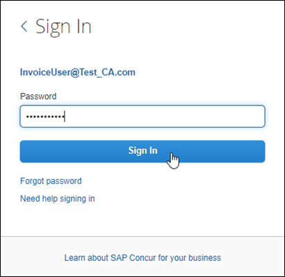 - On the Concur mobile or web sign in page, enter your SAP Concur username and password.