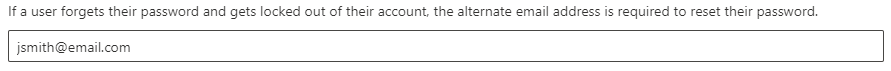 If a user forgets their password and gets locked out of their account, the alternate email address is required to reset their password.