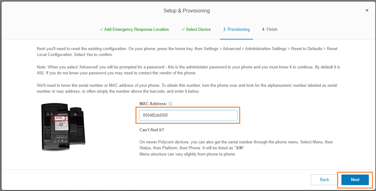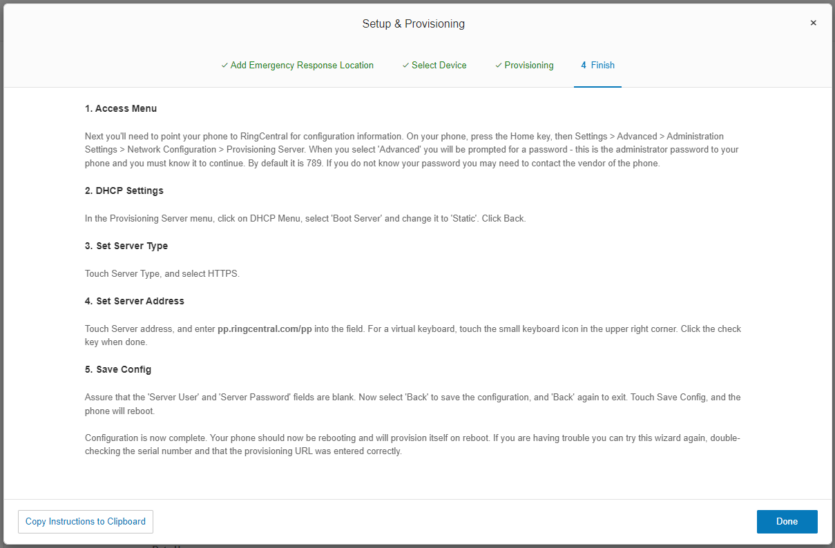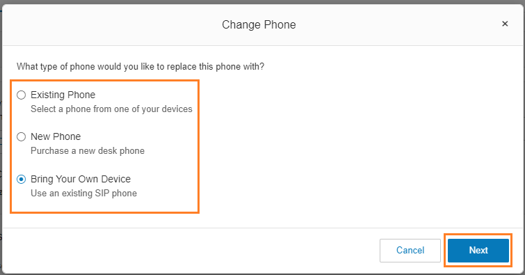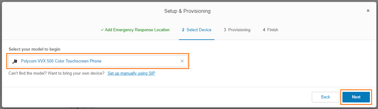 - If the device has already been loaded into RingCentral, choose Existing Phone.