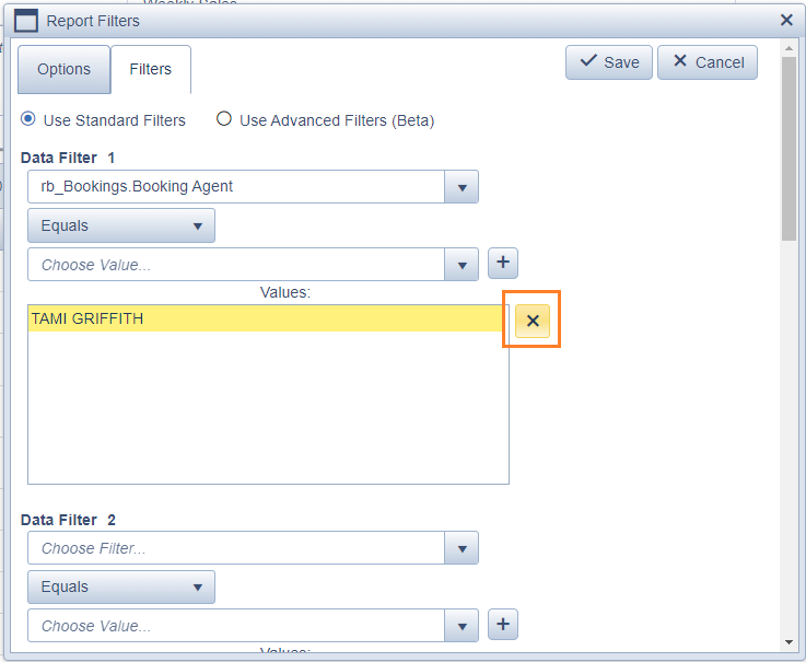 - Switch to the Filters Tab, and select the existing agent from the copied batch, and click the X to remove.