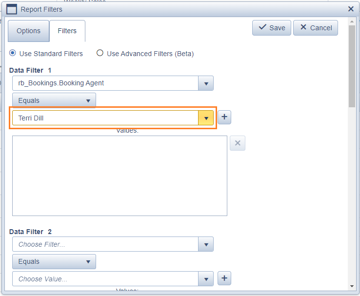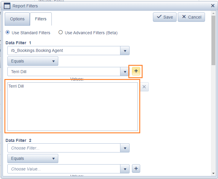 - Next click the plus (+) icon to the right of the search box to add the agent to the filter.