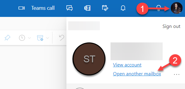 - Click profile image, and select open another mailbox.